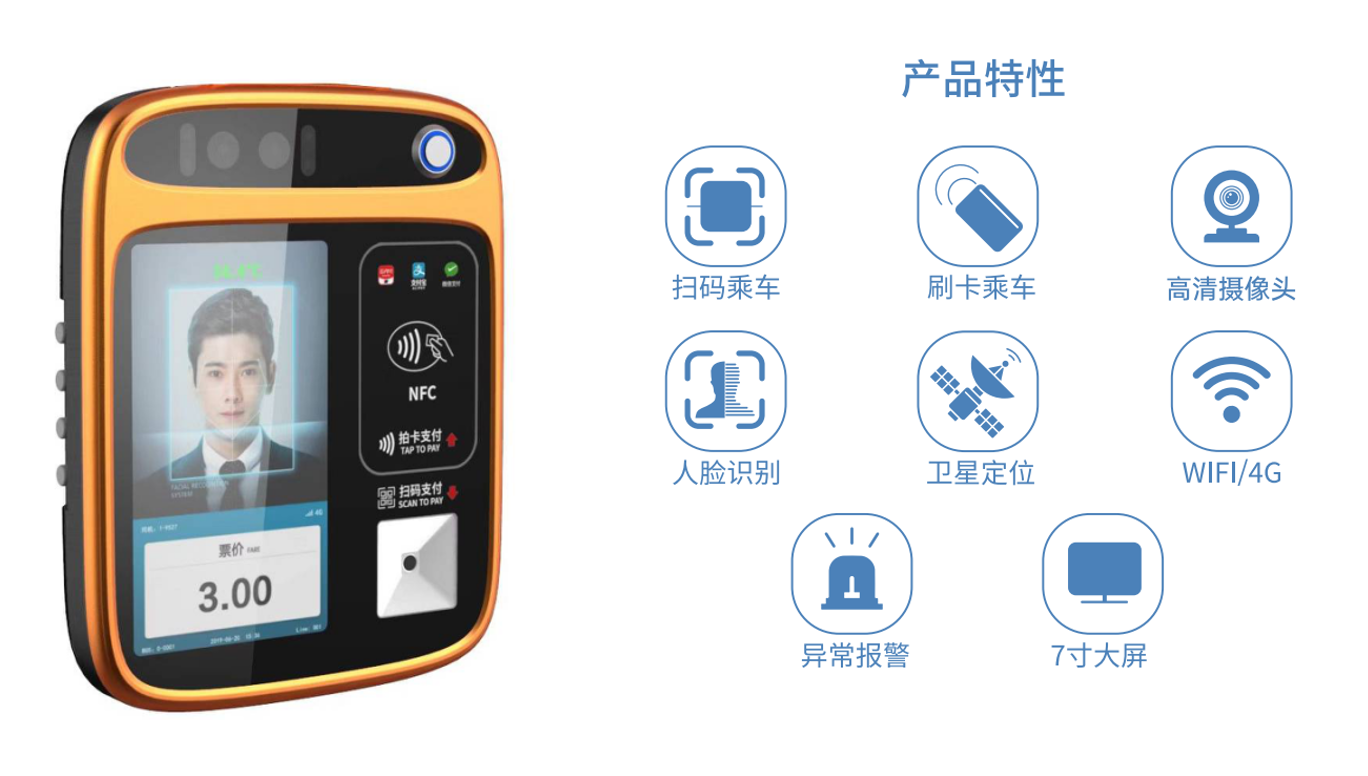 公交人脸识别支付POS机是杭州国朗科技有限公司基于公交业务场景,定制开发一款集移动支付、人脸识别、身份证识别的一款车载智能终端设备,支付方式多样,同时适用定制巴士、企业、校园、食堂等场景人脸支付