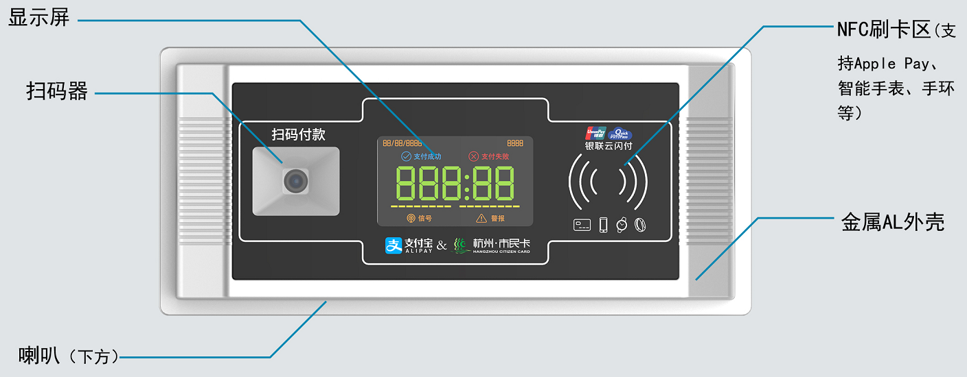 1、产品刷卡(银联卡)、支付宝、微信、银联钱包扫码一体化设计